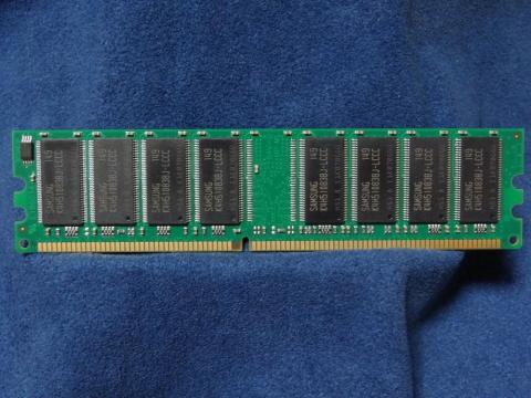 メモリ本体は両面実装タイプでした。DDRメモリを使うのは初めてでしたが、DDR2やDDR3に比べて背が高いんですね。