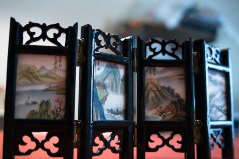 枠は木製、屏風は石です。触ったり叩いたりした感じでは。