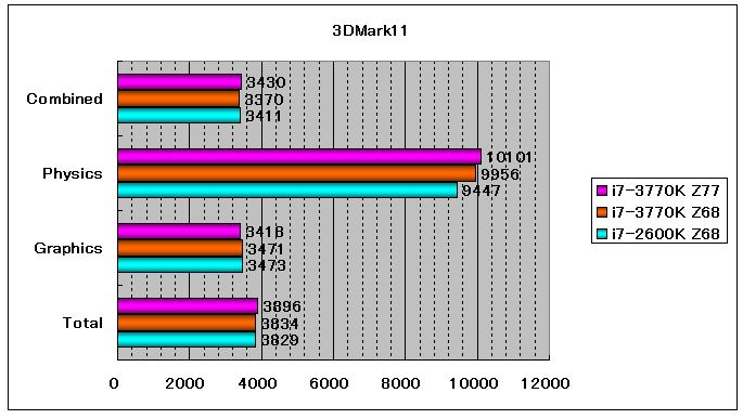 HD7770を使用した3DMark11に置いては,HD7770の性能を表していることになりますので,基本的にスコア差は出ないのですが,Physicsスコアが5%速いす.