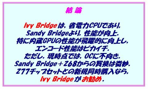 i7-2600K vs i7-3770K および Z77 vs Z68 とレビューした結果においても,まとめの結論は変わりませんでした.