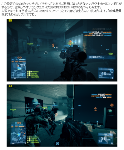 「1280x720」「映像品質 低」で32v32のマルチプレイ