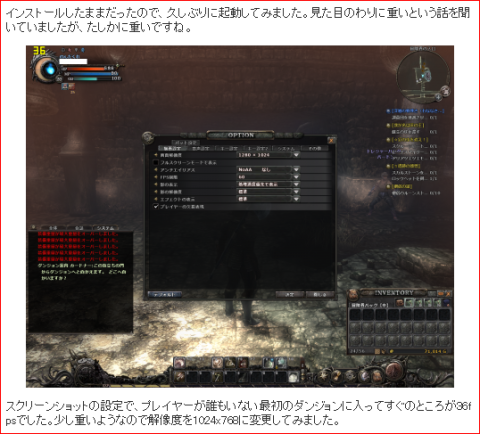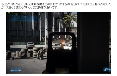 ハードのレビューなので、できるだけ実際のプレイ画面と同じ感じにしたかったのでDxtory試用版でも録画してみました。今回はCorel VideoStudio Pro X4で1280x768を1280x720にサイズ変更、圧縮を行ってみましたが、だいぶ劣化してしまいました。