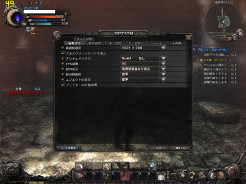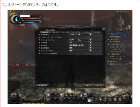 フルスクリーン解像度 1024x768 映像画質 最高(ミッション)