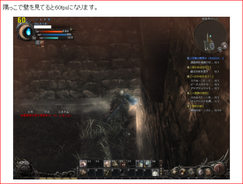 ボス戦で撮影したスクリーンショットで一番低かったのが31fpsでした。前回と比べて密集具合が低いので比較するのは難しそうです。