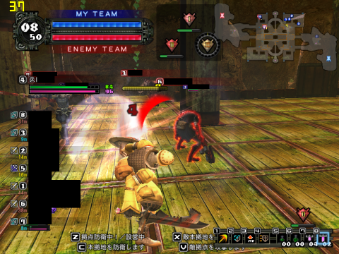 戦ってるところ、密集しているところではfpsが大きく下がります。