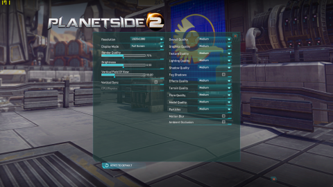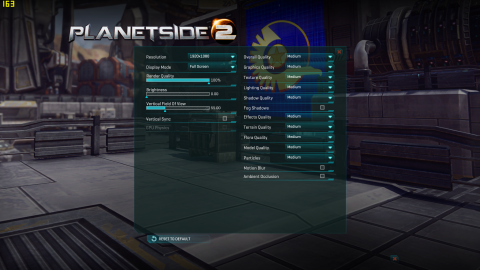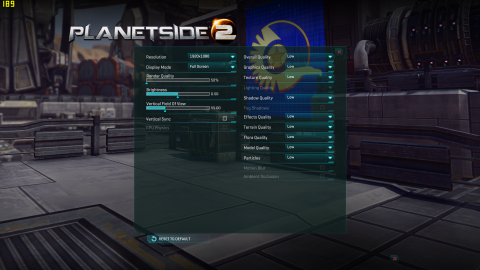 「RESET TO DEFAULT」を押したらRender Qualityが下がったのでインストールしてそのままの状態はみんな同じで「RESET TO DEFAULT」を押すとパソコンのスペックにあわせて調整する感じがします。