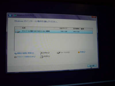 インストールするドライブの指定です、選択し、「次へ」ボタンをクリック