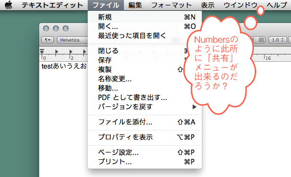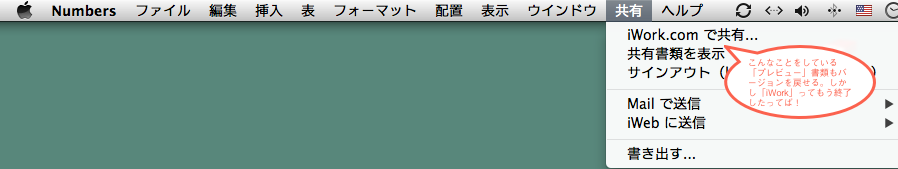 Numbersには「共有」メニューがある。
