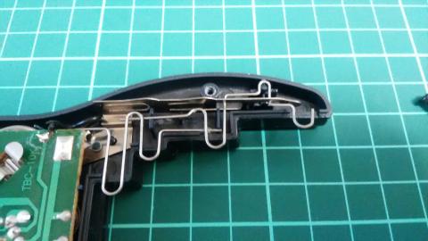 このクネクネ曲がった針金は2本使っていて(針金は1本では無いのです)電池のマイナス電極になってます 電池を差し込むと針金を押して針金と金属板が接触して回路に繋がるのでしょうか 針金同士も接触したりします 凄く複雑な、不確実な構造です 以前からバネの接触がオカシイとは思っていましたがこれ等が原因でした 電極とバネを兼用させて電池の長さも吸収させる製作者の苦肉の策ですがトリッキーで、電池チェックが確実でないですね 如何なんでしょうね 東芝さん....中国製です (待てよ...東芝の商品かな?) 円盤系の電池は測れません。