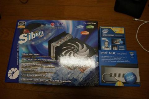 さてこれがパッケージ。巨大さの比較として、NUCとINTEL製CPUリテールBOXを