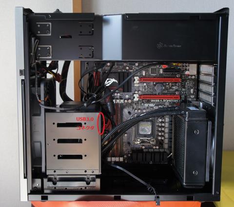 最上段にHDDを取り付けるとホルダーより飛び出るためUSB3.0コネクタと干渉。