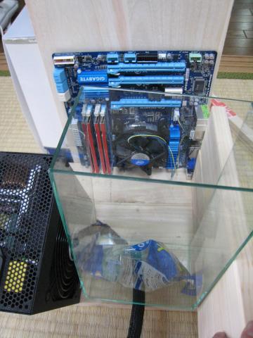 イメージとしてはよさげです、涼しやかな水槽の奥にマザーボードが見えます、自己満足できそうです