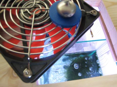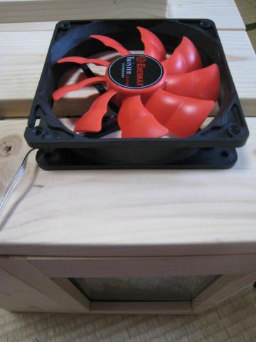 上部は熱気を逃がし、水蒸気を排出するために12cmファンを取り付けます