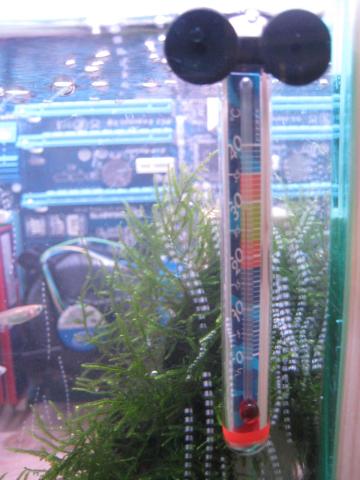水槽の温度は27度とファンを付けていると普段より下がります(我が家の環境ではほぼ30度くらいです)