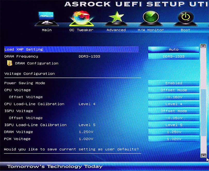 Core i5-3570Kでは-0.200VほどOffsetで下げても 0.9V程度が印加されていましたので、Core i7-3770TはTDP45Wを達成するために、高負荷時のCPU電圧が大幅に下げられているものと思われます。