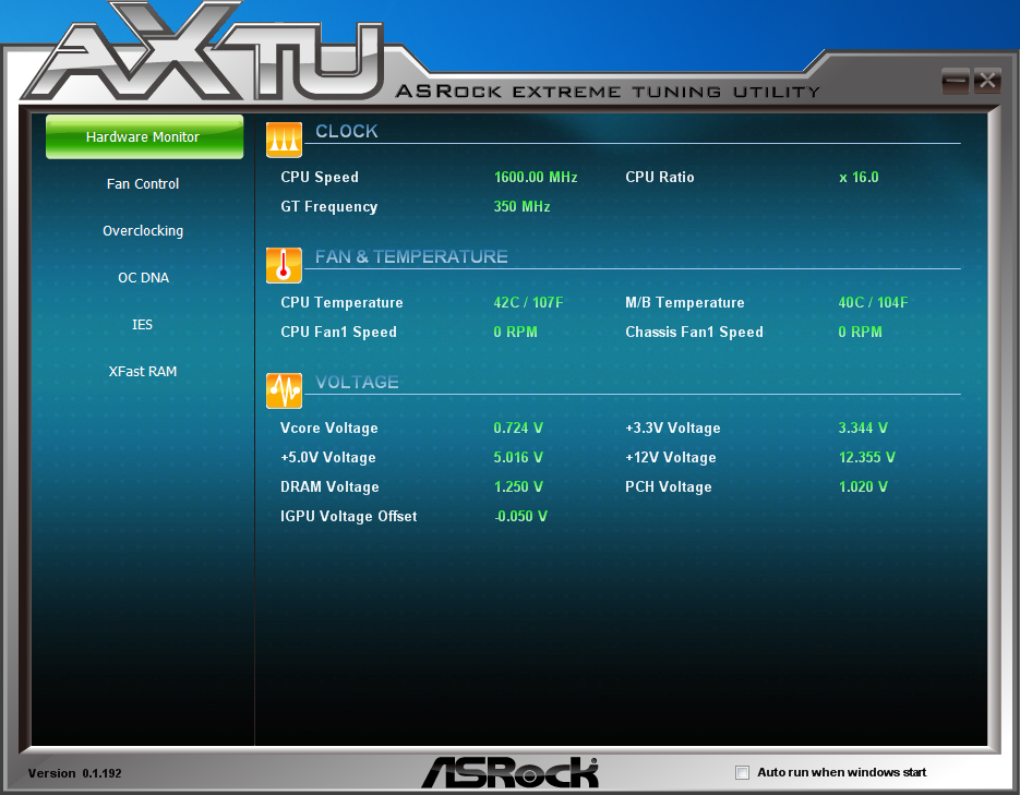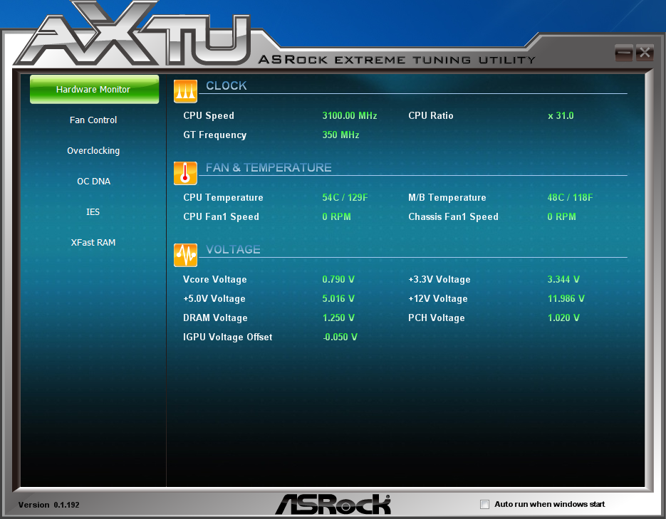 アイドル時および高負荷時のシステム状態を、ASRock Extreme Tuning Utilityを使って調べてみました。