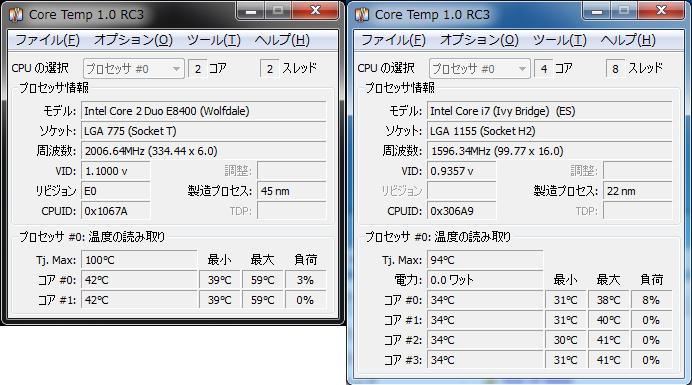 左:LGA775のE8400-3G 右:LGA1155の3770T