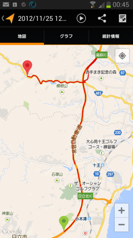 過去の移動データを開くと地図がでます。
