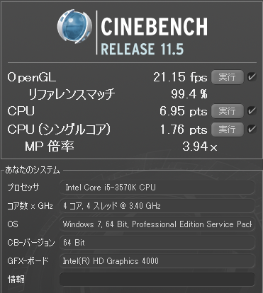 CINEBENCH、3DMARK11、PCMARK7で行いました。