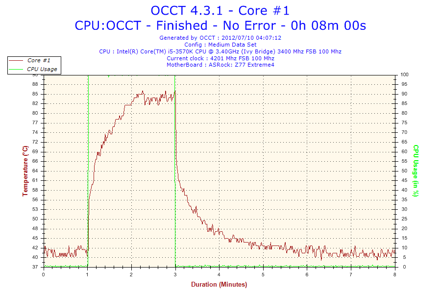 OCCTの画像では、テスト時間10分ですけど実際は8分で行いました。