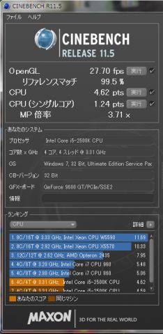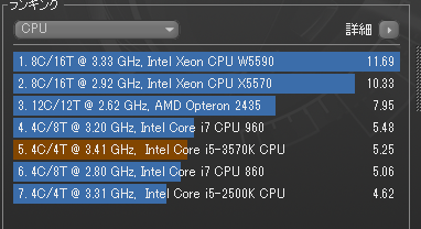 これを、Core i5-3750kへ変更したときにどのくらい変化があるか確認します。