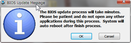 Utilityの左下の「update BIOS」ボタンをクリックするとメッセージが表示されます。