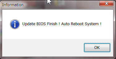 BIOSTARのBIOSUpdateUtilityの「Tseris BIOS Update」は気を付けたほうがいいですね。とりあえず無事に完了したのでいいのですがあわてて画面閉じたりすると危険な香りがします。違うファイルとか選択するとどうなるんだろう。。。