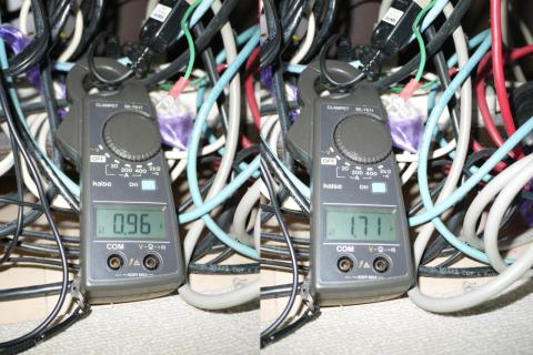 通常ならワットチェッカーなどで消費電力を比較するようですが、ワットチェッカーを持ち合わせていませんので、知り合いから、クランプメーターを借りてきました。