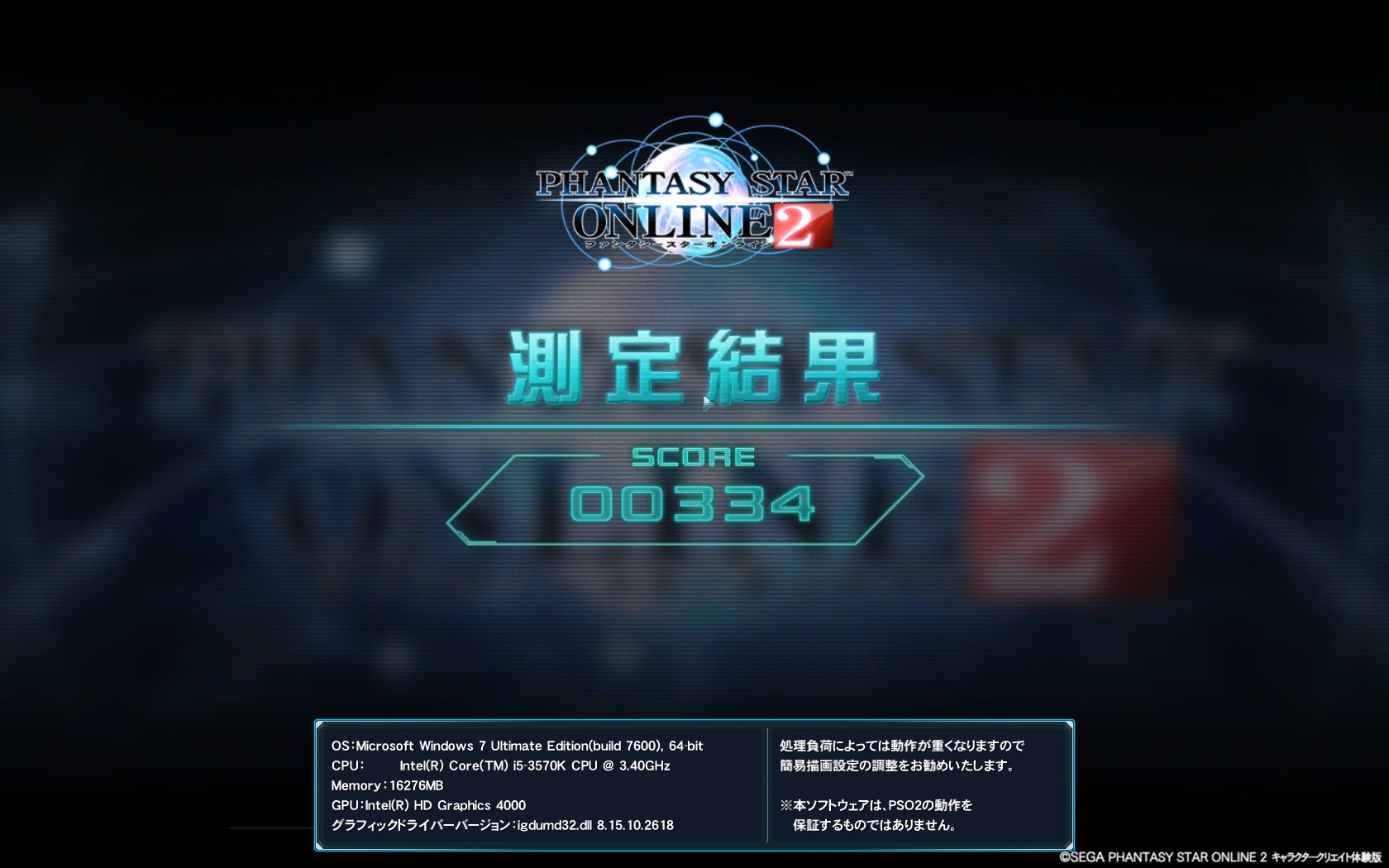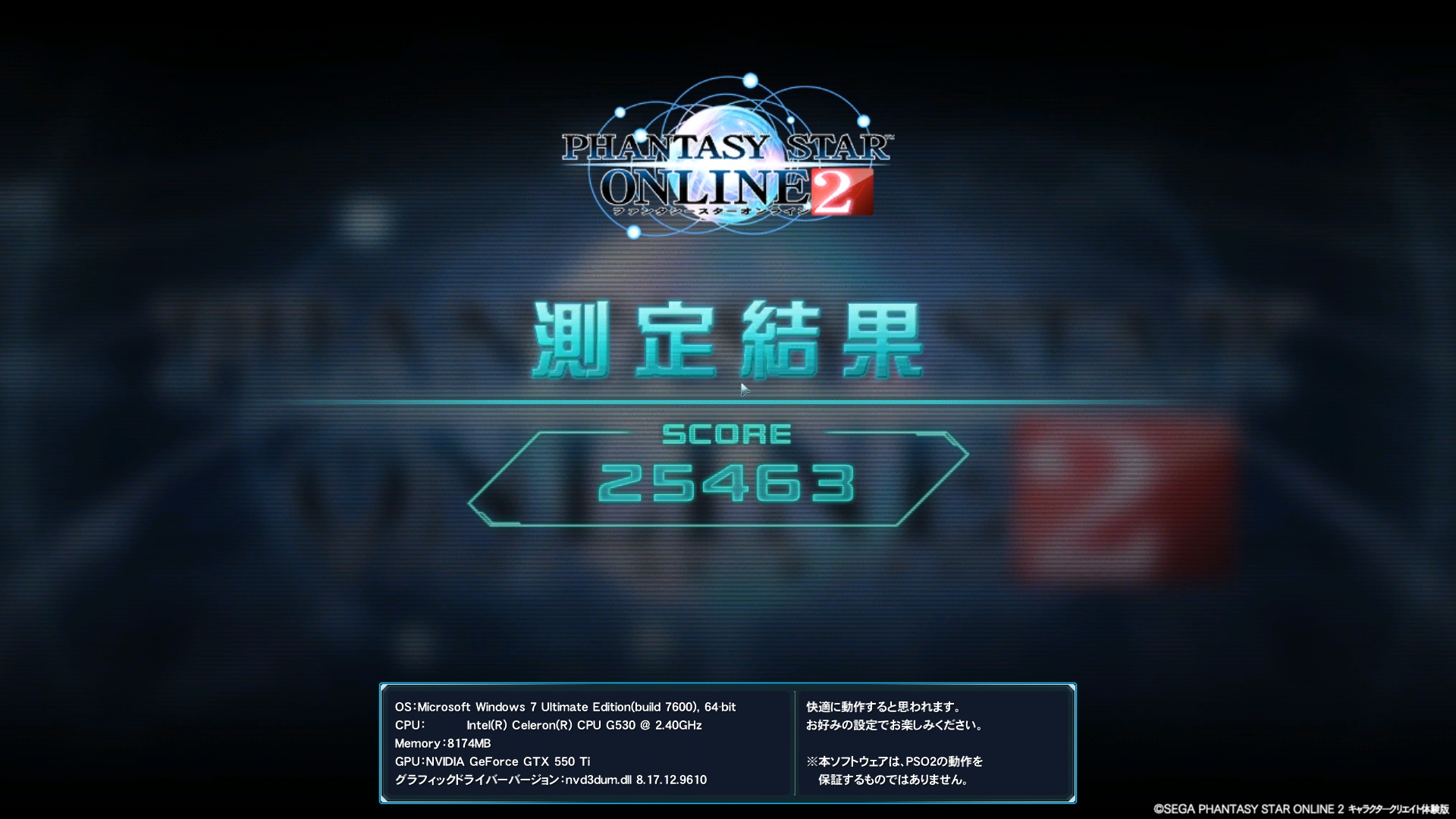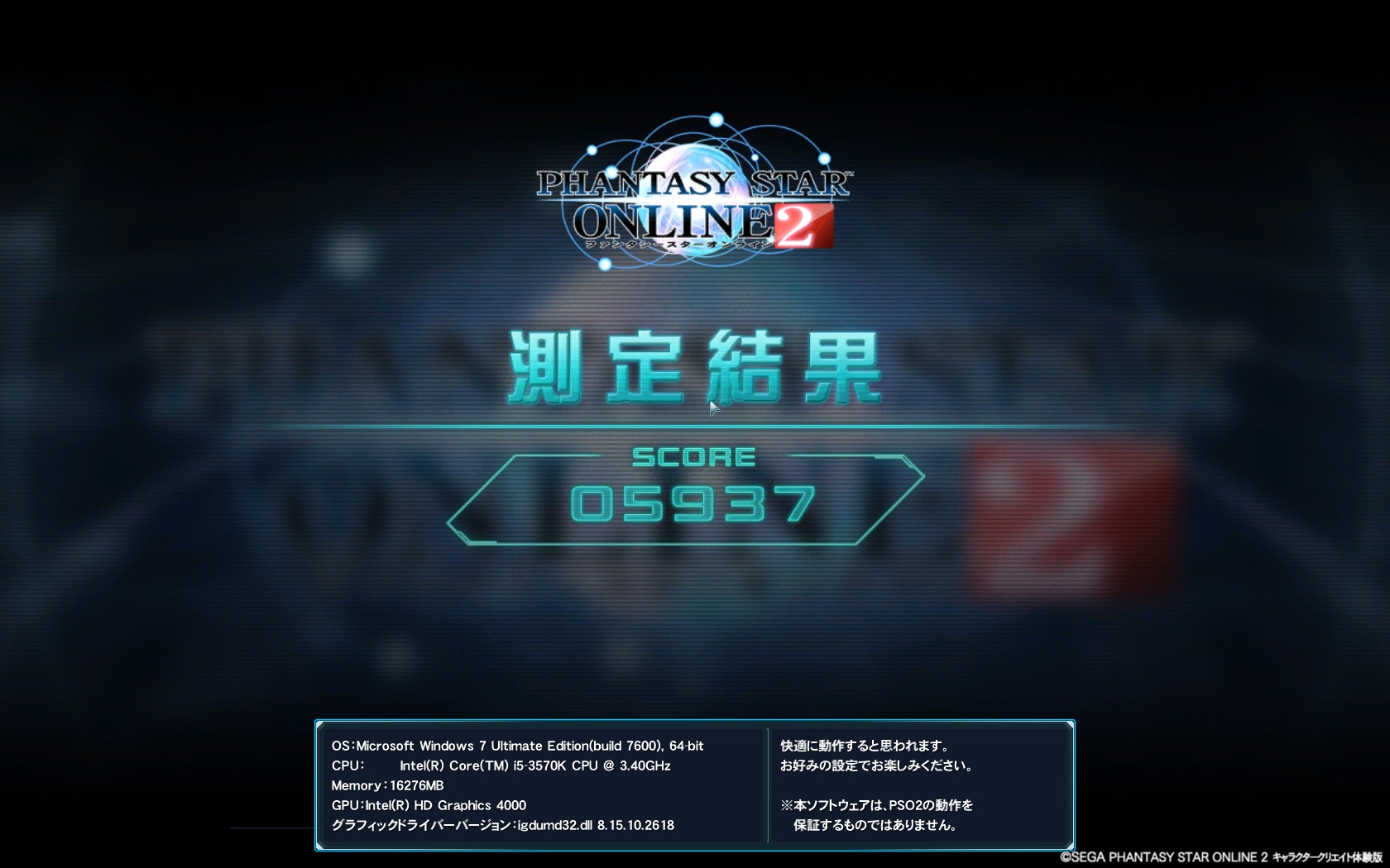 PSO2のベンチマークは設定が1~5段階 5がハイスペック用となっています。2000~4999スコアで標準、5000スコア以上で快適動作となります。