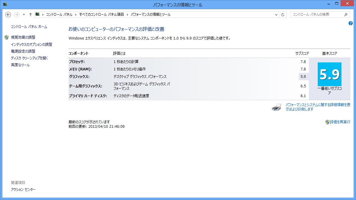 グラフィックはスコアとしては低く出ていますがゲーム用途で組んだPCではないので、コレも不満は出てません。まだ仮運用状態なので今後不満がでるかもしれませんが、そのときはグラフィックボードを追加したいと思います。