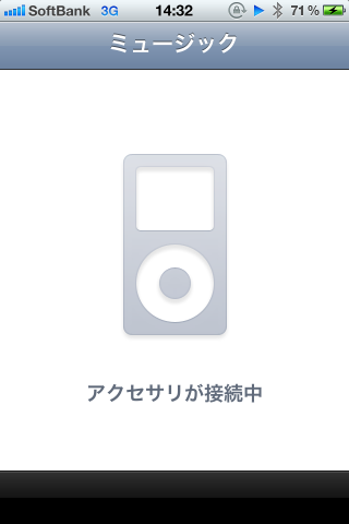 ただし、ALPINE CDE-121J は、iPhone4側でのコントロールが出来ないので、音楽再生時にはこの表示になります。