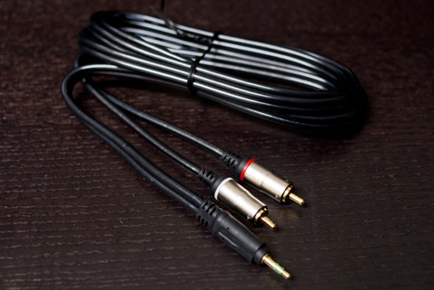 ピンプラグ×2をステレオミニプラグに変換するケーブルが必要になり、こちらを購入。