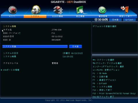 GIGABYTEが採用している 3D BIOSは、UEFIのユーザーインターフェイスとして、