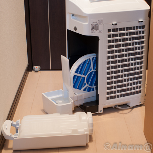 給水タンクと、加湿フィルターを取り出すと、こんな感じになります。