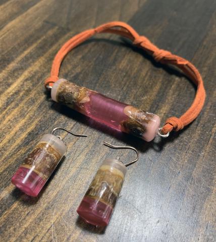 家ののうらの桜の剪定されて落ちていた枝を使って、レジンで加工、ヤスリをかけて作ったわけですが、もっとコンパウンドをかけないと鏡面までは行きませんね