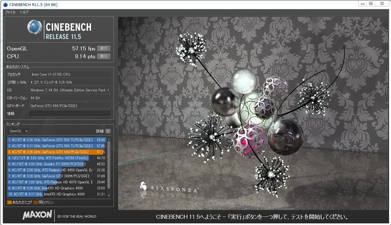 CINEBENCHは550TIより落ちる結果へ