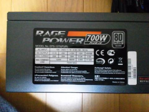 サイズが販売しているEnhanceの80PLUSシルバーの700W電源です。プラグインです。