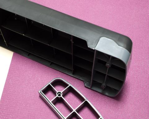 後、気になったのは、ステップの底面にゴム脚が4個付いていますが、体重が掛るとゴム脚は完全に潰れて、樹脂が床に接触します。
