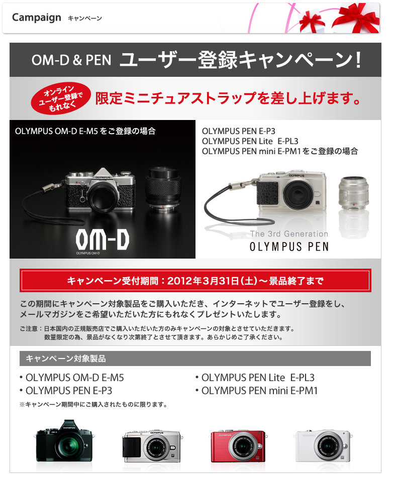 が、新製品E-PL5/E-PM2の発表とともに、キャンペーンは終了してしまったようです・・・