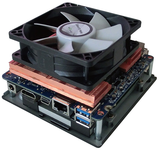 今回は、静かなファンでどの位温度が下がるか試してみたかったので、良いのですが、このファンは、一般的な80mmファンなので、厚みが25mmあり、ブロアーファンより厚いため、BRIX Proの筐体に押し込めることはできません。