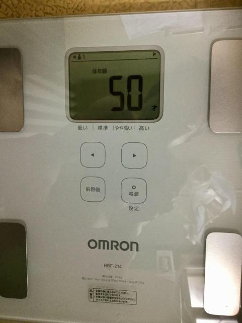 実年齢64歳 体年齢50歳 7年前は実年齢57歳 体年齢44歳 マイナス14〜13と変わらず
