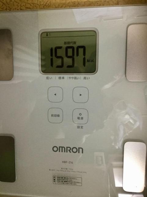 基礎代謝 1597キロカロリー 7年前は 1557キロカロリー これは体重に比例