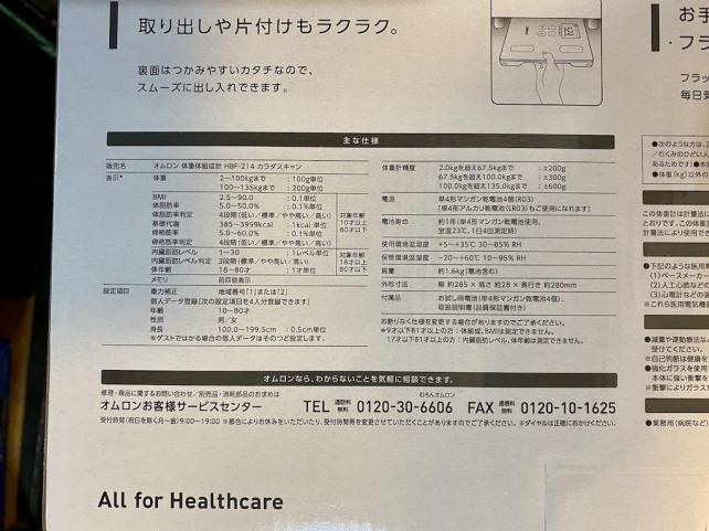こちらです。 同じオムロンの体組成計カラダスキャン214。