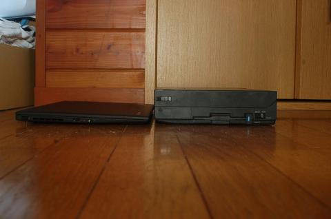 1枚目の写真と同じ組み合わせですが、ThinkPad生誕20周年、ということで隠れた初代ThinkPadであるPS/55 note C23Vです。CPUは386 25MHz、メモリは2MB、液晶は10.4インチで重量は3キロ近いノートパソコンです。