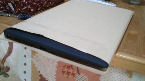 ThinkPadとしては額縁が非常に狭く、14インチ液晶の割には図体は小さくなっています。なので、今までX120eを入れていたカバンにもギリギリ収まり、薄さのおかげで他に入れられる物が増えました。写真のように、封筒にも収まります。