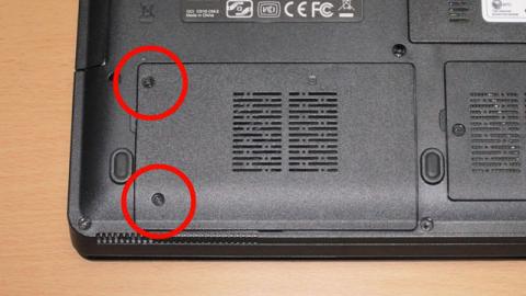 初めにLANケーブル、USB機器、ACアダプターなどの配線を抜いてノートPCを裏返してバッテリーを取り外します。