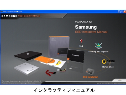 マニュアルに従って、SSD Installation > Laptop SSDとページを開いていくと、データの移行に利用するNorton Ghost英語版のインストール作業が始まります。SSDを取り付けるだけの場合、インストールは不要です(マニュアルより)。