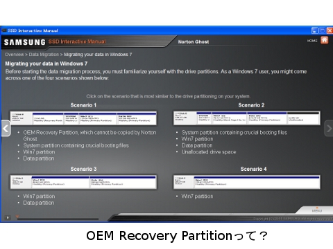 3つ目は、既存のデータを移行する幾つかのシナリオが掲載されているのですが、“OEM Recovery Partition, which cannot be copied by Norton Ghost”などの注記について、ある程度の知識が要求されます(英語は訳せても、システム的な意味がわかりません)。