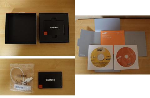 SSDのほか、SATA-USB2.0ケーブル、マニュアル、各種光メディア(マニュアル、Norton Ghost)が用意されています。