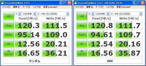 4K Readが弱いものの、ランダム/0fillでほぼ変わらない速度。